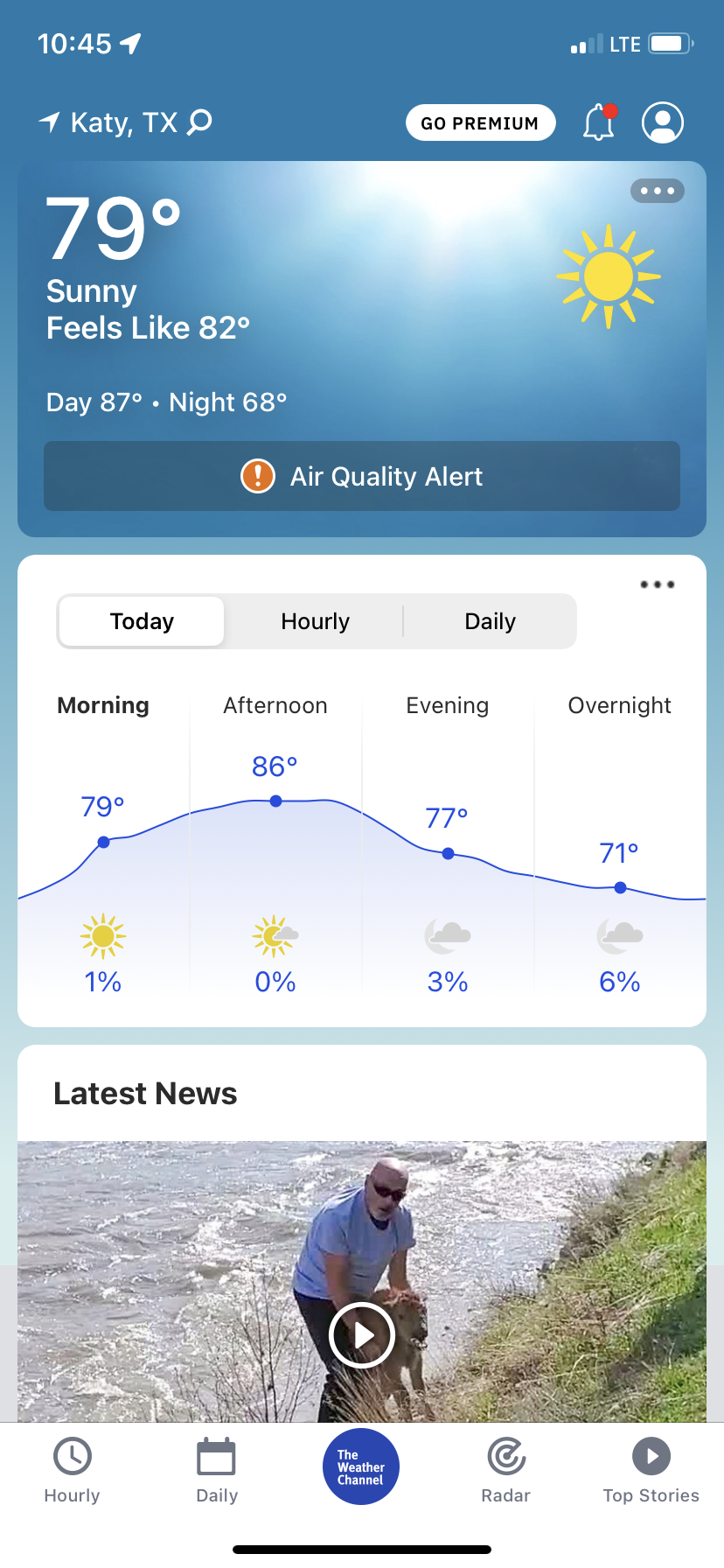 The day was partly cloudy, dry, and very warm. The sky looked to be partly cloudy, during the mid-morning, afternoon, evening, and night. The sky looked to be mostly clear, during the early morning. It felt warm, during the early and mid-morning, evening, and night. It felt very warm, during the late morning and afternoon. The wind speeds were light with moderate gusts, during the morning, afternoon, evening, and night. I did not see, feel, or hear about any rain drops in the Houston, TX area, during anytime of the day.