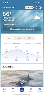 The day was mostly cloudy, very warm, and dry. The sky looked to be mostly cloudy, during the morning, afternoon, evening, and night. It felt warm, during the early and mid-morning, late evening, and night. It felt very warm, during the late morning, afternoon, and early evening. The wind speeds were light with moderate gusts, during the early and mid-morning. With some possible moderately strong gusts, during the late morning, afternoon, and evening. The wind speeds looked to be light, during the night. There were isolated light to moderate and some moderately heavy to heavy showers and thunderstorms to the north and West of the Houston, TX area, during the late morning, afternoon, and evening. With some of the moderate to moderately heavy showers reaching the Houston, TX area, during the afternoon and evening. I did not see, feel, or hear any rain drops. It has been awhile since I have seen a good thunderstorm or rain. I think at least two weeks. Hoping to see one soon!